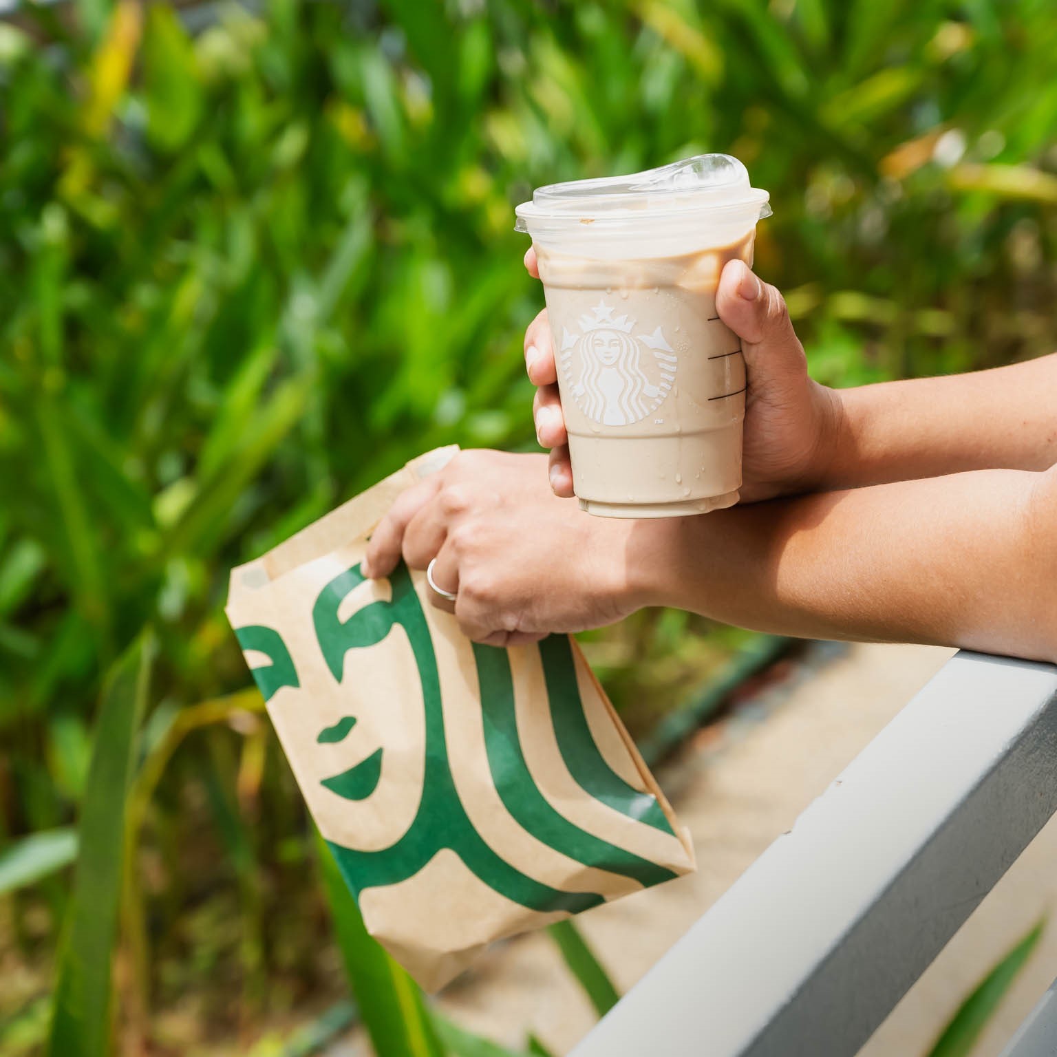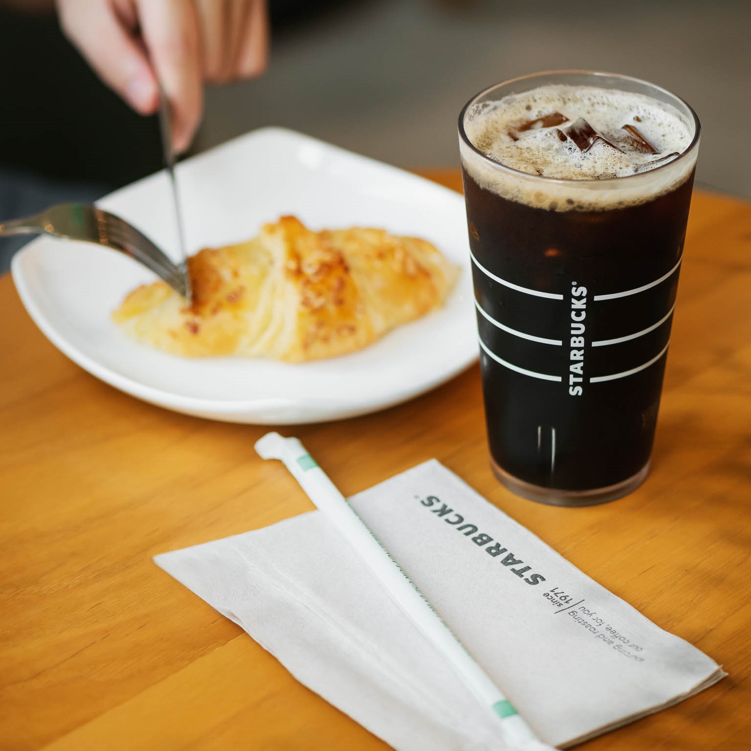 At Starbucks, we constantly push ourselves to reduce the environmental footprint of our operations. As part of our ongoing efforts, we have developed paper bags made of 95% post-consumer fibre, napkins of 100% recycled content, to-go plastic cups made with recycled PET, strawless lids for all to-go iced drinks, compostable straws made of CPLA (corn starch-based material) and take-away cutlery made with biodegradable cornware. Our stores are also installed with LED lights to save energy.